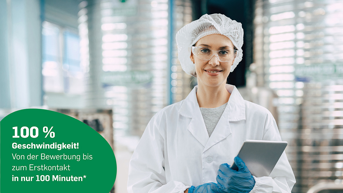 Wir bringen seit über 58 Jahren Menschen und Arbeit erfolgreich zusammen – deutschlandweit und mit umfänglicher Betreuung. Dafür geben wir Dir unsere 100%-Garantie: Durch 100% Geschwindigkeit versprechen wir Dir eine schnelle Rückmeldung innerhalb von 100 Minuten(*). Mit unseren bundesweiten Niederlassungen garantieren wir Dir 100% Nähe durch eine persönliche Onboarding-Begleitung.